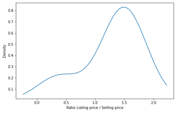 We will determine the relationship between the listing price and selling price by calculating the distribution of the ratio between them.