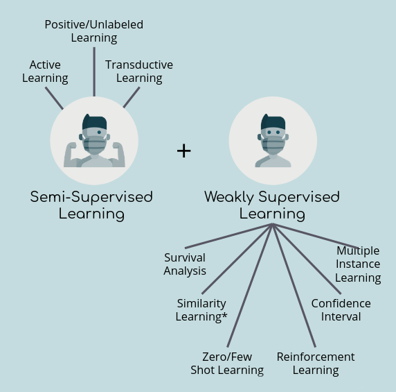 Thus, we can combine both semi-supervised learning and weakly supervised learning, in order to: